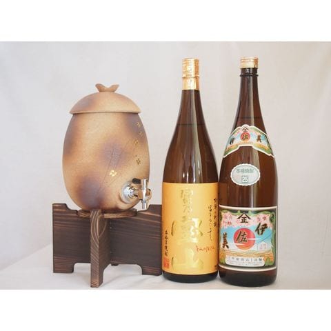 信楽焼・明山窯 焼酎サーバー 火色金小紋 2200cc(滋賀県)芋焼酎3本セット 西酒造 富乃宝山1800ml 甲斐商店 伊佐美1800ml(鹿児島)