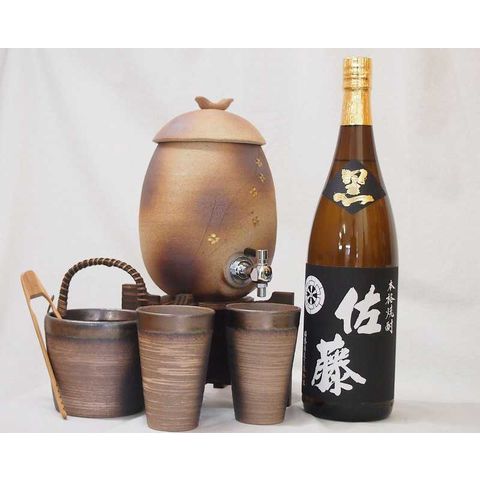 信楽焼・明山窯 焼酎サーバー 火色金小紋 2200cc(滋賀県)+萬古焼・備前金彩焼酎ペアカップ 氷入れ(三重県)+芋焼酎 佐藤 黒 1800ml(鹿児島県)
