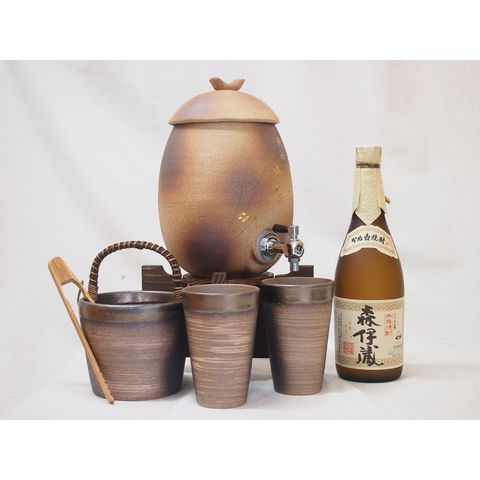 信楽焼・明山窯 焼酎サーバー 火色金小紋 2200cc(滋賀県)+萬古焼・備前金彩焼酎ペアカップ 氷入れ(三重県)+芋焼酎 森伊蔵 720ml(鹿児島県)