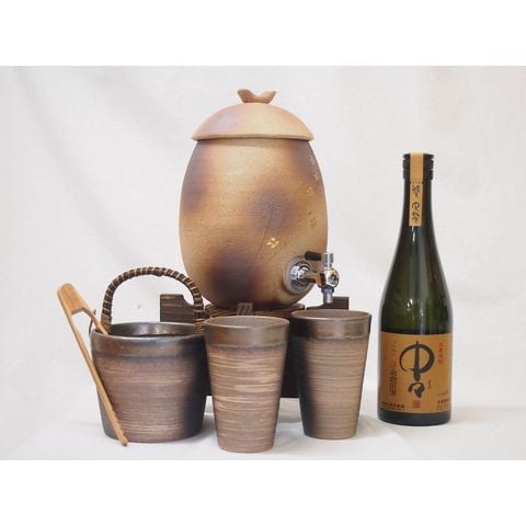 信楽焼・明山窯 焼酎サーバー 火色金小紋 2200cc(滋賀県)+萬古焼・備前金彩焼酎ペアカップ 氷入れ(三重県)+芋焼酎 黒木本店 中々 720ml (宮崎県)