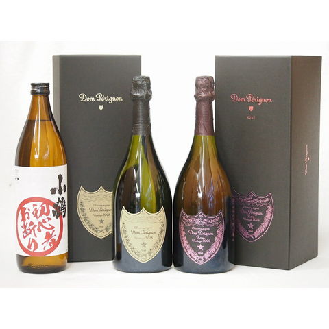 芋焼酎とドンペリ3本セット(フランスドンペリニヨン白 ドンペリ二ヨンロゼ ギフト箱付750ml×2本 鹿児島県本格芋焼酎 初心者お断り900ml×1本)