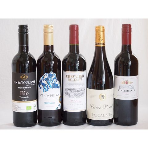 スペイン×フランス特選赤ワイン5本セット(ヴァンドゥツーリズム酸化防止剤無添加&Bioテンプラニーリョ(スペイン) ヴィニャペーニャ ライトボディ(スペイン) シュバリエ・デュ・ルヴァン ルージュ(フランス) キャベェブレヴァン ルージュ(フランス) パスカルシータキュヴェルージュ(フランス)) 750ml×5本