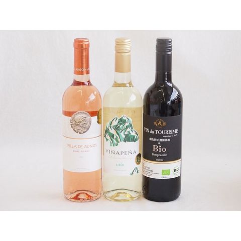 風土溢れるスペインワイン3本セット(金賞受賞ビリャデアドノス ボバル ロゼ辛口 有機ヴァンドゥツーリズムBioテンプラニーリョ赤辛口 ヴィーニャ・ペーニャ 白) 750ml×3本