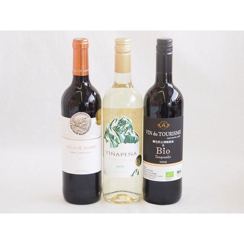 風土溢れるスペインワイン3本セット(金賞受賞ビリャデアドノス ボバル テンプラニーリョ 赤ミディアムボディ 有機ヴァンドゥツーリズムBioテンプラニーリョ赤辛口 ヴィーニャ・ペーニャ 白) 750ml×3本