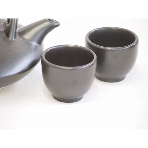 父の日 国産美濃焼 黒千代香2合(15×16.5×H7.5cm400cc)セット2客(50cc)ツル付(計450g)