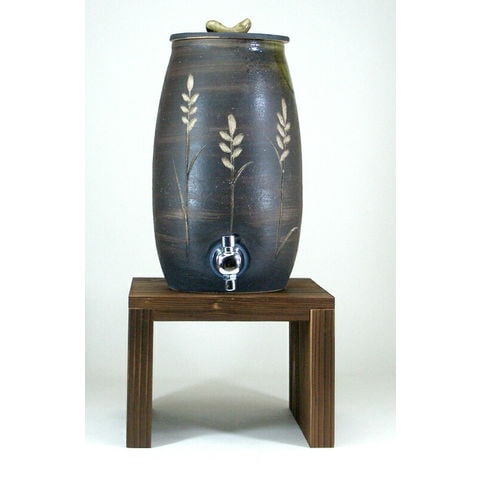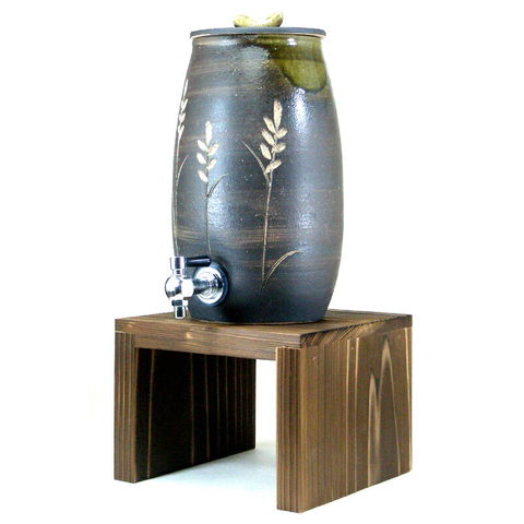 信楽焼・明山窯 尺徳利 焼酎サーバー 麦の穂 黒釉彫 3000cc (s10-15)