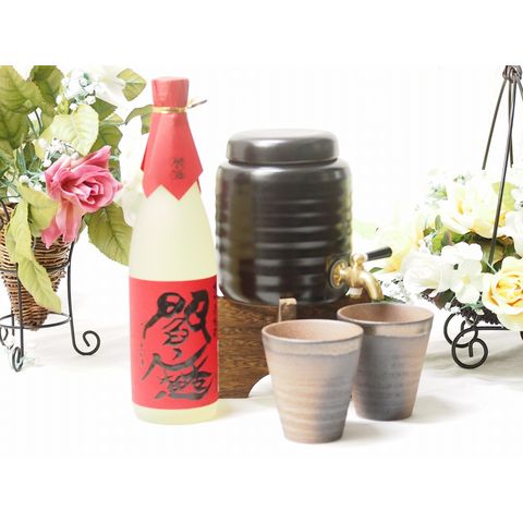 本格焼酎サーバー1000cc(18cm×24cm 1kg)萬古焼きペアカップ付セット(老松酒造 大分麦焼酎 閻魔 25度 720ml) 焼酎サーバー説明書付