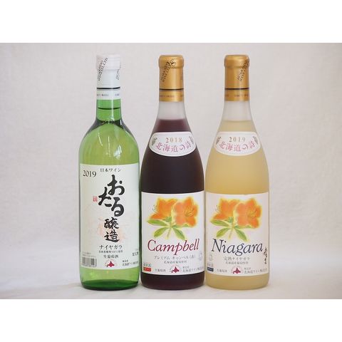 おたるスペシャル3本セット(北海道完熟ナイアガラ白ワイン甘口 おたる醸造ナイアガラ生葡萄酒 やや甘口 北海道プレミアムキャンベル赤甘口) 720ml×3本