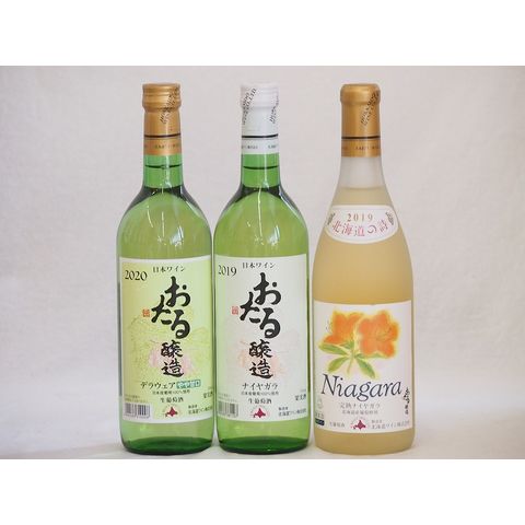 おたるスペシャル3本セット(おたる醸造 デラウェア 生葡萄酒 やや甘口 北海道完熟ナイアガラ白ワイン甘口 おたる醸造ナイアガラ生葡萄酒 やや甘口) 720ml×3本
