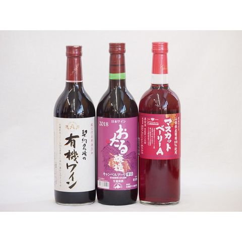飲み比べおすすめ赤ワイン3本セット(北海道赤ワイン キャンベルアーリ辛口 山梨県マスカットベーリーA赤ワイン 有機赤ワイン コンコード やや甘口) 720ml×3本