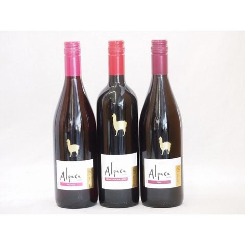 チリ産ワインアルパカ3本セット(赤ピノ・ノワール(ミディアムボディ) 赤シラー(フルボディ) 赤カベルネ・メルロー(ミディアムボディ)) 750ml×3本