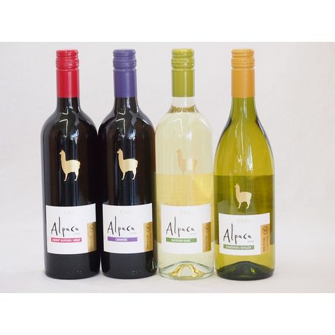 チリ産ワインアルパカ4本セット(赤カルメネール(フルボディ) 赤カベルネ・メルロー(ミディアムボディ) 白シャルドネ・セミヨン(辛口) 白ソーヴィニヨン・ブラン(辛口)) 750ml×4本