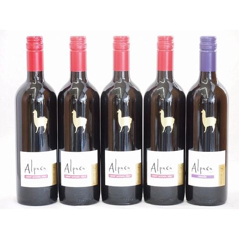 チリ産ワインアルパカ5本セット(赤カルメネール(フルボディ) 赤カベルネ・メルロー(ミディアムボディ)) 750ml×5本