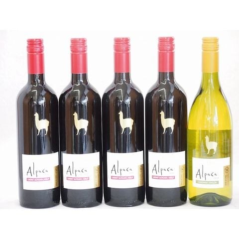 チリ産ワインアルパカ5本セット(赤カベルネ・メルロー(ミディアムボディ) 白シャルドネ・セミヨン(辛口)) 750ml×5本