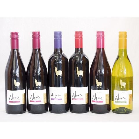 チリ産ワインアルパカ6本セット(赤ピノ・ノワール(ミディアムボディ) 赤シラー(フルボディ) 赤カルメネール(フルボディ) 赤カベルネ・メルロー(ミディアムボディ) 白シャルドネ・セミヨン(辛口)) 750ml×6本