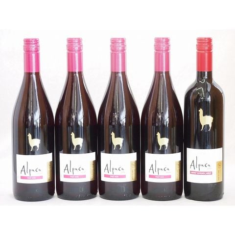 チリ産ワインアルパカ5本セット(赤ピノ・ノワール(ミディアムボディ) 赤カベルネ・メルロー(ミディアムボディ)) 750ml×5本