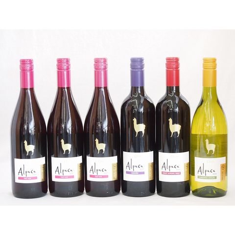 チリ産ワインアルパカ6本セット(赤ピノ・ノワール(ミディアムボディ) 赤カルメネール(フルボディ) 赤カベルネ・メルロー(ミディアムボディ) 白シャルドネ・セミヨン(辛口)) 750ml×6本