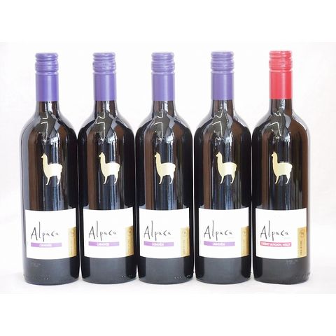 チリ産ワインアルパカ5本セット(赤カルメネール(フルボディ) 赤カベルネ・メルロー(ミディアムボディ)) 750ml×5本