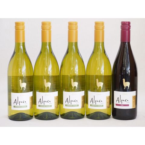 チリ産ワインアルパカ5本セット(赤シラー(フルボディ) 白シャルドネ・セミヨン(辛口)) 750ml×5本