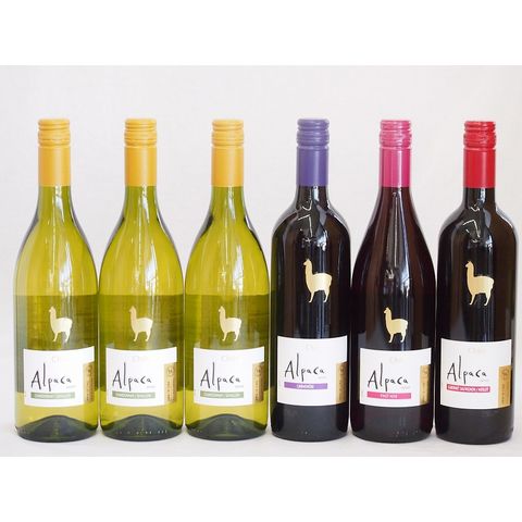 チリ産ワインアルパカ6本セット(赤ピノ・ノワール(ミディアムボディ) 赤カルメネール(フルボディ) 赤カベルネ・メルロー(ミディアムボディ) 白シャルドネ・セミヨン(辛口)) 750ml×6本
