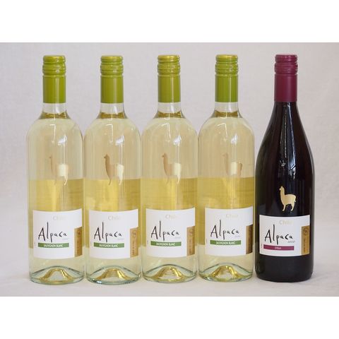 チリ産ワインアルパカ5本セット(赤シラー(フルボディ) 白ソーヴィニヨン・ブラン(辛口)) 750ml×5本