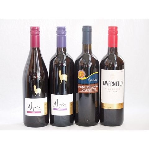 チリ産アルパカとイタリア赤ワイン4本セット(赤シラー 赤カルメネール 赤タヴェルネッロ ロッソ 赤モンテプルチアーノ ダブルッツオ) 750ml×4本