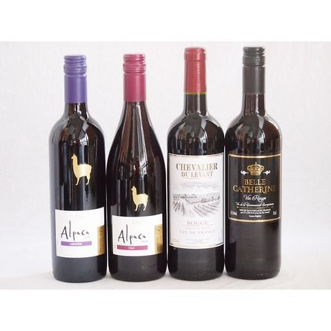 チリ産アルパカとフランス赤ワイン4本セット(赤シラー 赤カルメネール 赤シュバリエ・デュ・ルヴァン ルージュ 赤ベル キャサリン ルージュ) 750ml×4本