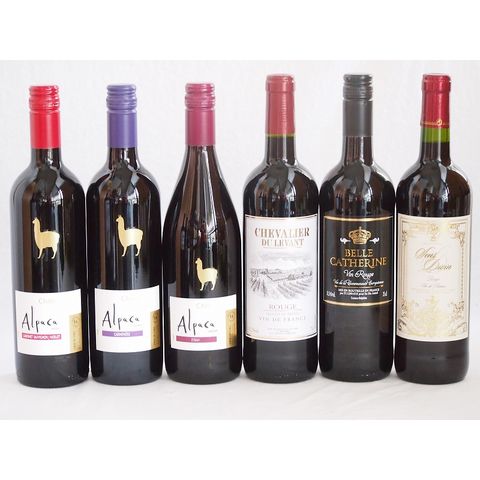 チリ産アルパカとフランス赤ワイン6本セット(赤シラー 赤カルメネール 赤カベルネ・メルロー 赤シュバリエ・デュ・ルヴァン ルージュ 赤ベル キャサリン ルージュ 赤サンディヴァン ルージュ) 750ml×6本
