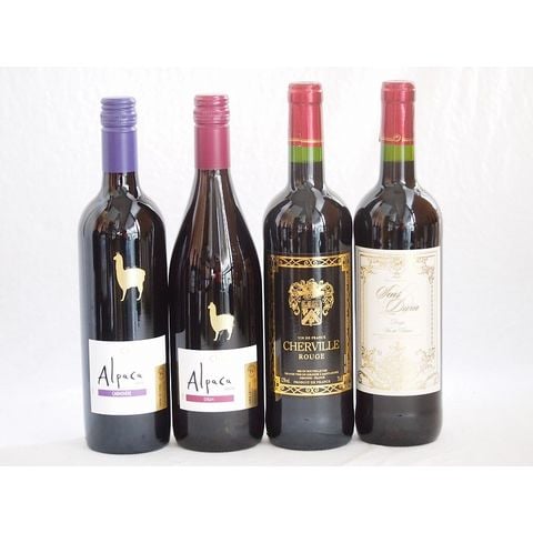 チリ産アルパカとフランス赤ワイン4本セット(赤シラー 赤カルメネール 赤サンディヴァン ルージュ 赤シャルヴィーユ ルージュ) 750ml×4本