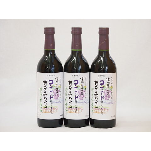 コンコード種から生まれた甘口の赤ワインセット 信州産100% 酸化防止剤無添加(長野県)720ml×3
