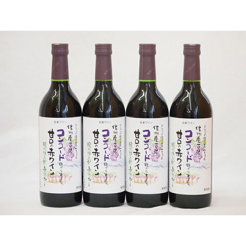 コンコード種から生まれた甘口の赤ワインセット 信州産100% 酸化防止剤無添加(長野県)720ml×4