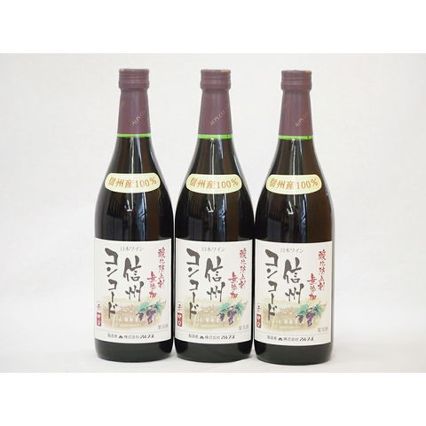 信州コンコード種 赤ワインセット 信州産100% 酸化防止剤無添加 中口(長野県)720ml×3