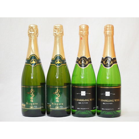 国産葡萄100%ナイアガラ スパークリング甘口ワインセット(北海道おたる2本 長野県塩尻2本)計4本