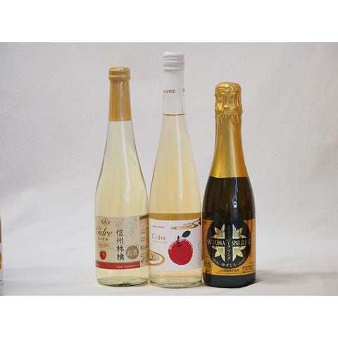 国産甘口スパークリングワイン3本セット 信州産100%林檎500ml Cidre500ml 鹿児島県薩摩スパークリングゆずどん375ml 計3本