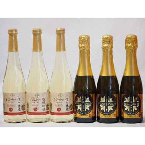 国産甘口スパークリングワイン6本セット 信州産100%林檎500ml×3本 鹿児島県薩摩スパークリングゆずどん375ml×3本 計6本