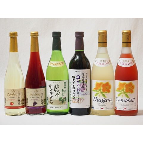 国産100%北海道おたる&長野県信州産ワイン6本セット コンコード甘口赤 信州ナイアガラ白 完熟ナイアガラ白 アーリキャンベルロゼ720ml×4本 林檎シードル 巨峰スパークリング500ml×2本