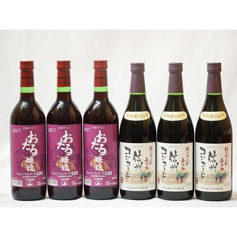 国産100%北海道おたる&長野県信州産ワイン6本セット(信州コンコード中口赤ワイン3本 キャンベルアーリ辛口赤ワイン3本)720ml×6本