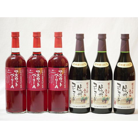 国産赤ワイン6本セット(山梨県産葡萄100%マスカットベーリーA3本 信州コンコード中口3本)720ml×6本