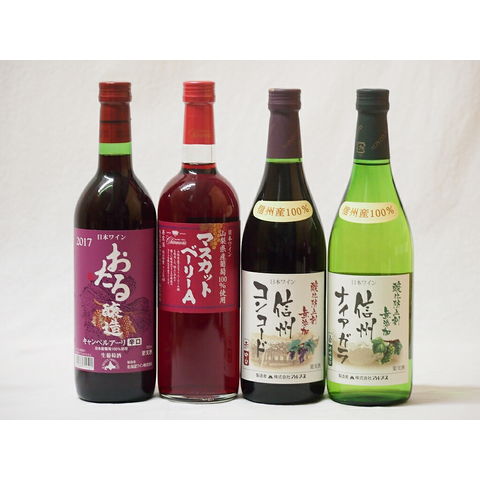 国産葡萄100%ワイン4本セット(山梨県産マスカット・ベーリーA 信州コンコード中口 信州ナイアガラ白 北海道おたるキャンベルアーリ辛口)720ml×4本