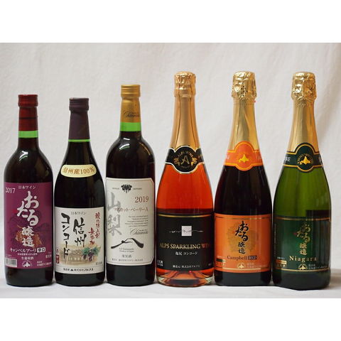 国産葡萄100%赤ワイン6本セット(山梨県マスカットベリーA 北海道おたるキャンベルアーリ辛口 信州コンコード中口 国産甘口スパークリングロゼ 赤 白)720ml×6本