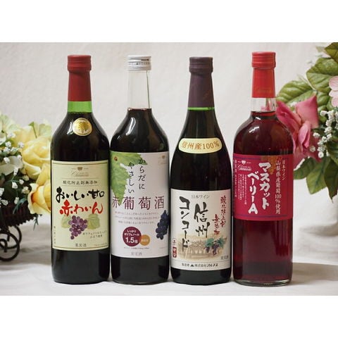楽しい赤ワイン4本セット (おいしい甘口わいん 赤葡萄からだにやさしい 信州コンコード マスカットベーリーA)720ml×4本
