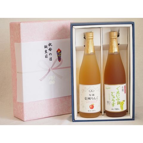 感謝の贈物ボックス ワイン蔵のジュース2本セット(信州りんご果汁100% 有機ナイアガラぶどう果汁100%) 710ml×2本