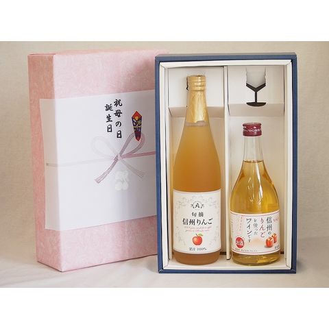 春の贈り物便り 感謝贈り物ボックス ピーチ2本セット(信州りんご果汁100% 信州りんごワインalc4%) 710ml×1本 500ml×1本
