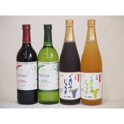 ノンアルコール4本セット(有機ナイアガラぶどう果汁100% 有機コンコードぶどう果汁100% ヴァンフリーノンアルコール白ワイン ヴァンフリーノンアルコール赤ワイン) 710ml×2本 720ml×2本