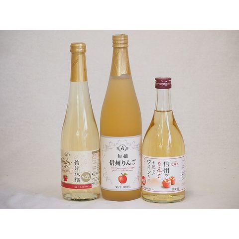 りんご3本セット(信州りんご果汁100% 信州産100%林檎シードル 信州りんごワインalc4%) 710ml×1本 500ml×2本