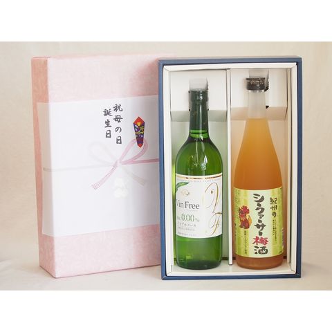 感謝の贈物ボックス 本格ノンアルコールワインと果物梅酒2本セット(ヴァンフリーノンアルコール白ワイン 国産シークァーサー梅酒) 720ml×2本