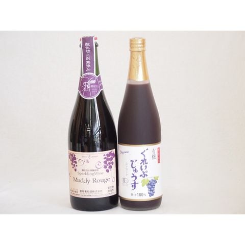 ぶどう果汁100%ジュースと果物ワイン2本セット(有機コンコードぶどう果汁100% マディルージュ葡萄スパークリングワイン甘口) 710ml×1本 750ml×1本