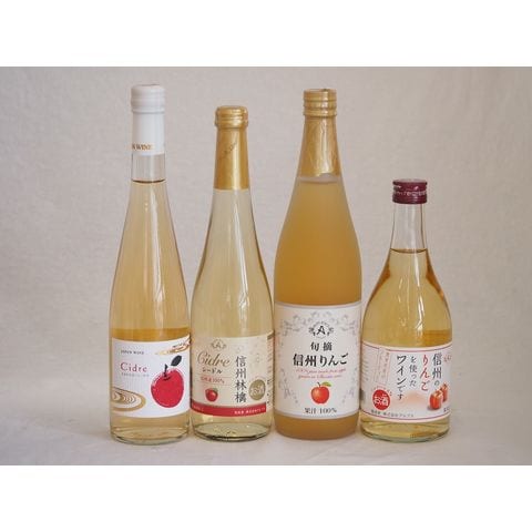 りんご果汁100%ジュースとりんごのお酒4本セット(信州りんご果汁100% 丹波シードルやや甘口 信州産100%林檎シードル 信州りんごワインalc4%) 710ml×1本 500ml×3本