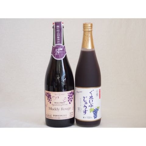 コンコードぶどう特集2本セット(有機コンコードぶどう果汁100% マディルージュ葡萄スパークリングワイン甘口) 710ml×1本 750ml×1本