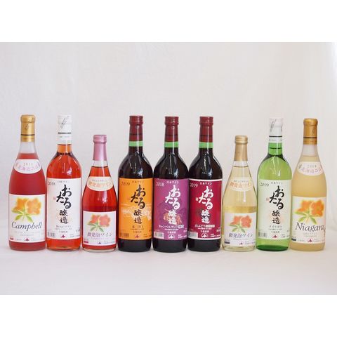 スペシャルおたるワイン9本セット(キャンベルアーリロゼワイン甘口 キャンベルアーリ赤ワイン生葡萄酒 辛口 キャンベル微発泡ロゼワインやや甘口 ナイアガラ白ワインやや甘口 ナイアガラ微発泡白ワインやや甘口 プレミアムキャンベルロゼワイン甘口 完熟ナイアガラ白ワイン甘口 赤ワイン生葡萄酒 甘口 赤ワイン生葡萄酒 山ぶどうやや甘口) 720ml×7本 500ml×2本 土日・祝日は休業日となります。 お値下げの交渉はしておりませんので、お問い合わせはご遠慮願います。 ★20歳未満の飲酒は法律で禁止されています。20歳未満の方に対しては酒類は販売いたしません。
